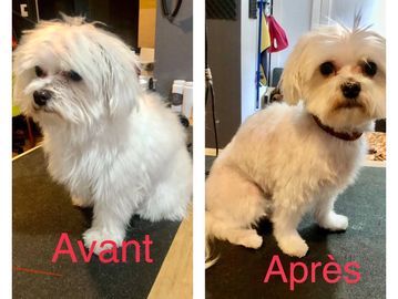 Laver, sécher,coupe,lavage des oreilles et coupe de griffe.
